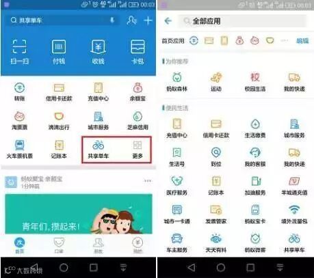 支付宝小程序聚焦于四大领域:政务服务、便民生活、商业服务、交通出行。其中,共享单车、共享充电宝分别是支付宝上最受欢迎的两大类小程序。