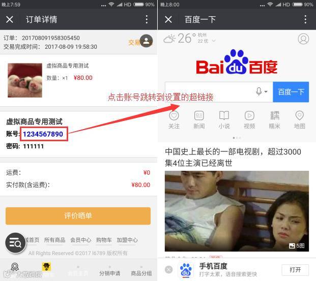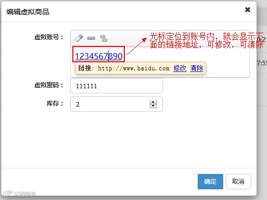 16. 虚拟商品添加账号时,可以链接超链接