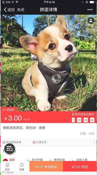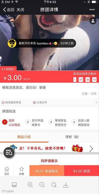 ① 点击拼团详情页,最新订单弹窗提醒显示拼团订单