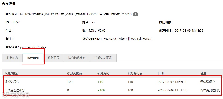(商家后台会员积分明细)