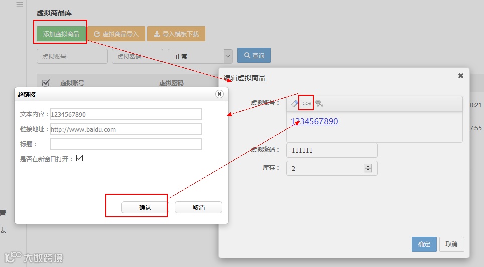 16. 虚拟商品添加账号时,可以链接超链接;