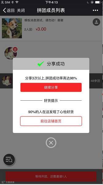 ② 团购成功改为拼团成功