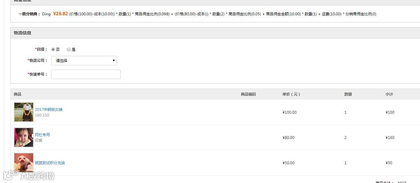① 订单中只有一种商品