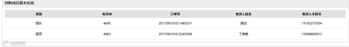 ⑥ 商家后台订单详情加一个团购成员基本信息(仅小团有效)