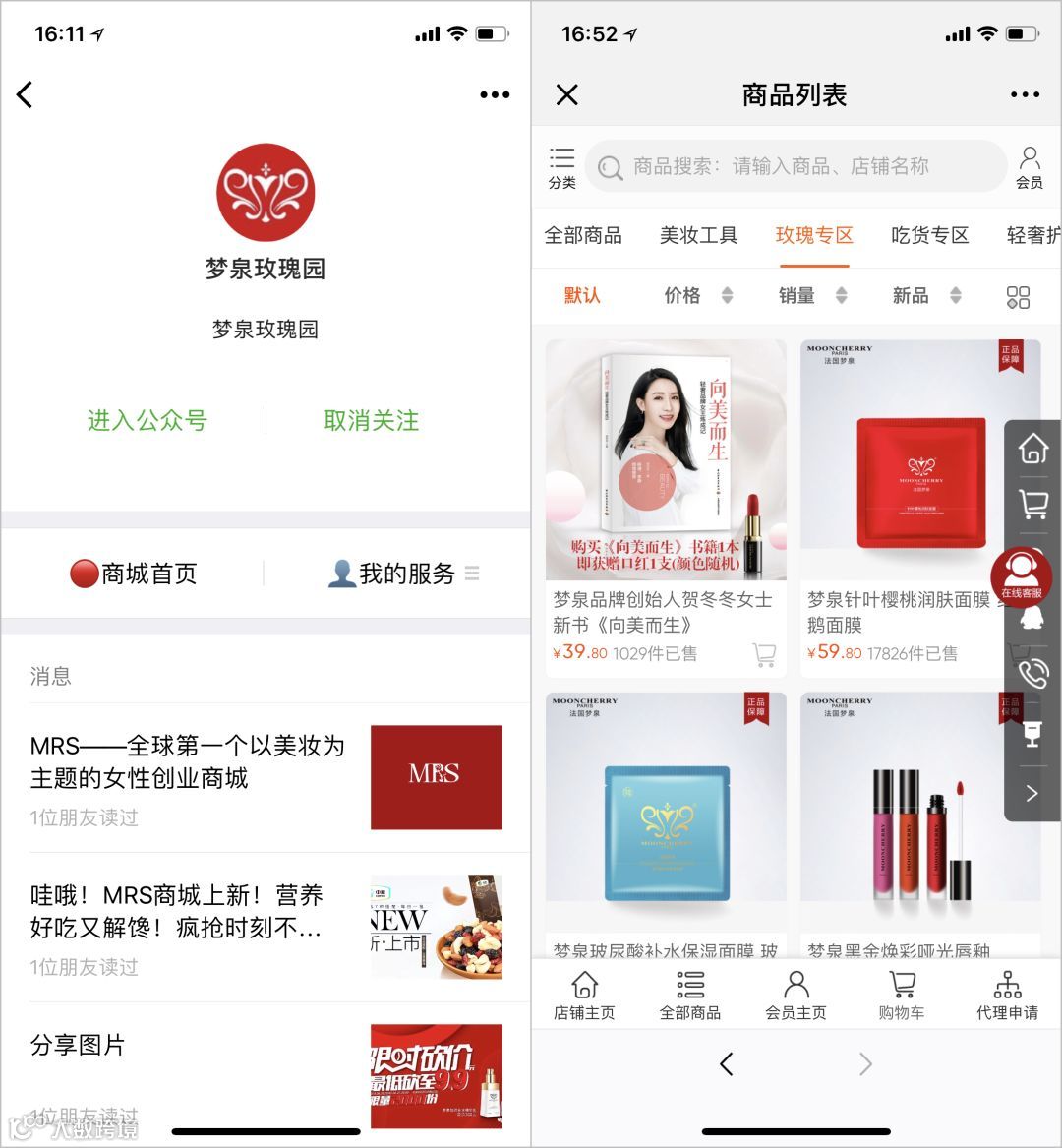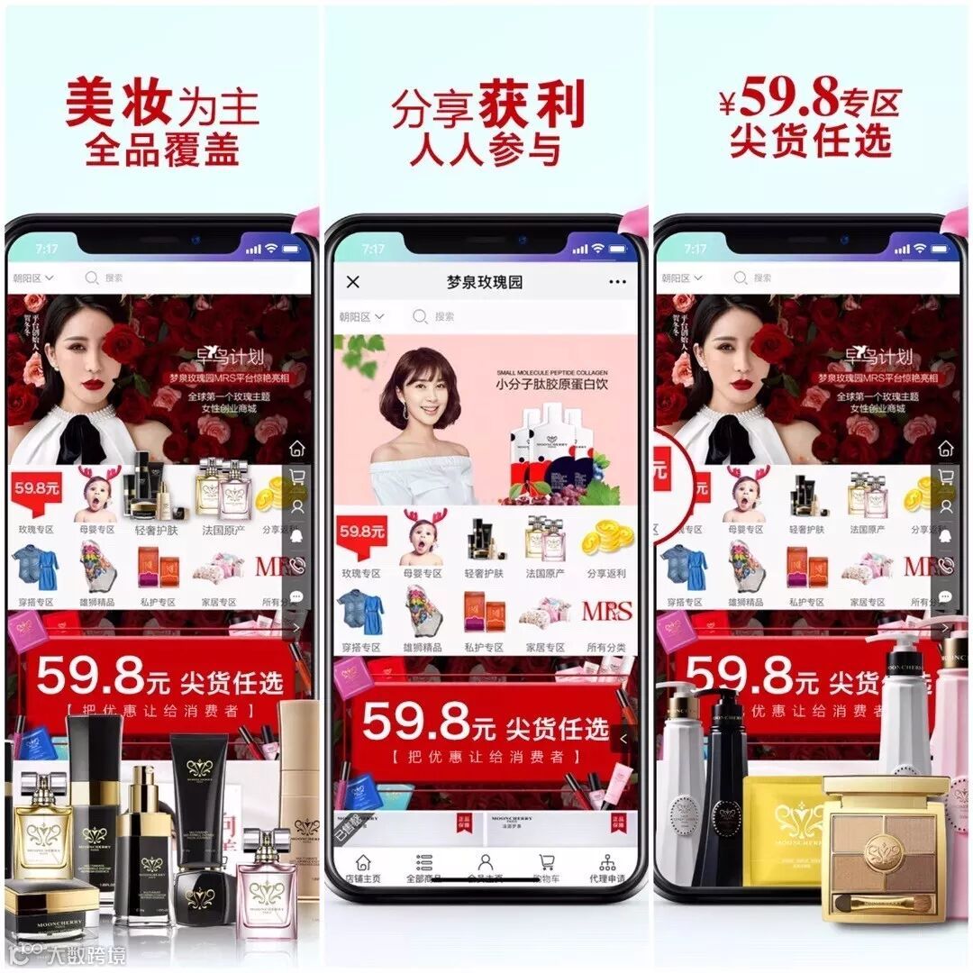 梦泉玫瑰园除经营护肤品之外,还有母婴类、私护类、服装类、家居类等提高商城的流量的商品。商城以分销模式为基础,打造集会员管理、代理分销、商品分类、营销工活动等为一体的垂直消费商城。