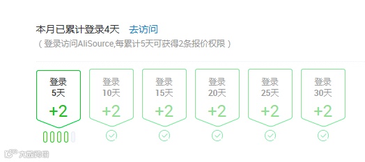 1. 每天登陆采购直达市场(sourcing.aliabab.com),获取累计登陆天数奖励(记得是登录状态哦);