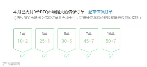 3. 在RFQ市场上传有支付的信保订单,获取累计上传有效信保订单奖励;