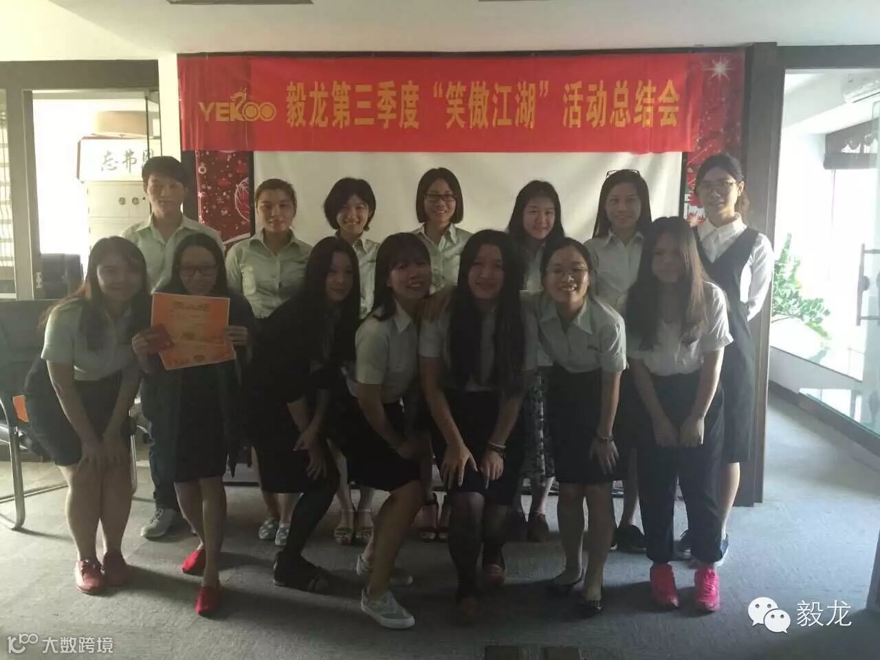 第三季度的“笑傲江湖”活动已经结束了,60天里,各门派精彩的团队展示、晒聚餐、晒统一标示,都展现出了团队的团队合作,那么在今天毅龙的小伙伴们为此次活动画上了完美的句号。笑傲江湖虽结束,但团队间的硝烟在最后一季度将会再次点燃。