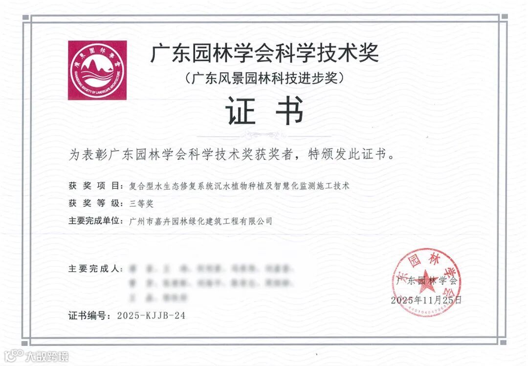 《复合型水生态修复系统沉水植物种植及智慧化监测施工技术》--三等奖