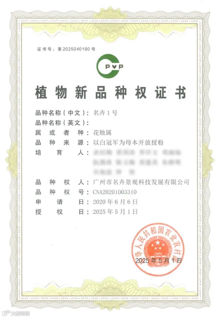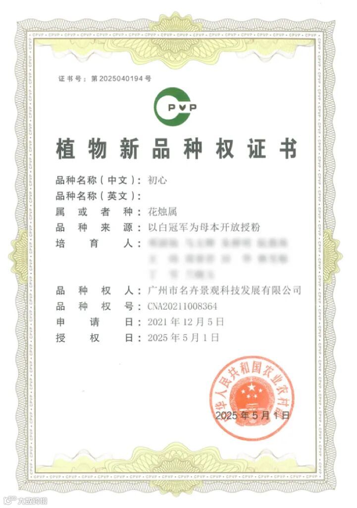 红掌是一种极具观赏价值的花卉,其花朵独特,色彩鲜艳,在国内外花卉市场上一直备受欢迎。然而,新品种的研发并非易事。每一个新品种的背后,都蕴含着大量的人力、物力和心血。从最初的杂交父母本筛选、杂交试验,到对培育过程中的性状观察、环境控制,再到最后的品种鉴定和申报流程,都需要遵循严格且科学的程序。在十余年的育种过程中,公司科研团队充分利用现代生物技术手段,结合传统的园艺育种经验,深入研究红掌的综合评价体系、无菌播种与栽培技术、花期调控及适应性等关键技术,从众多红掌新优品系中筛选出既拥有优良的观赏品质,又具备较强适应性与抗病性的红掌新品种。