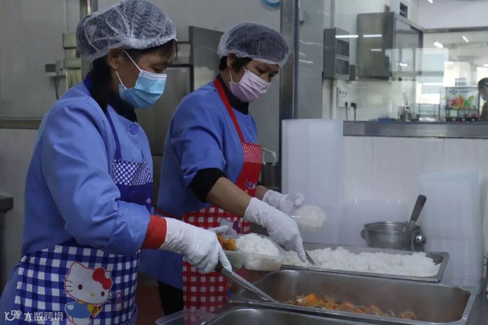食堂作为人流量也特别大的公共场所,公司制定严格的就餐时间,提前打包好饭菜,员工分批次有序排队领取。