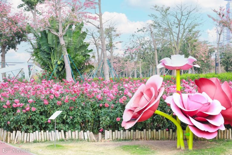 当冬日的寒风掠过,横琴以一种独特的方式将春天的绚丽多彩拥入怀中。为庆祝澳门回归祖国二十五周年、中华人民共和国成立七十五周年,名卉公司下属嘉卉公司对横琴粤澳深度合作区城市规划和建设局横琴花海长廊景观营造浓郁的节日氛围。在花海长廊一号驿站附近的月季园中,4000㎡的月季花海浪漫盛放,朵朵花开如同春天的微笑温暖而明媚。
