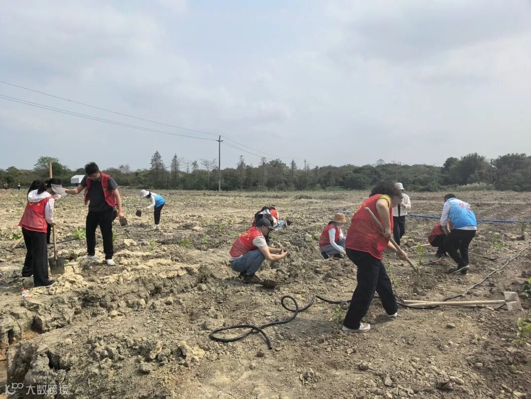 会后,部分团员前往公司从化基地参加“党建红引领生态绿,植树造林践初心”党建带团建主题活动。团员代表带着会议精神余热,化身“绿色使者”与青年党员结成植树小组,挥锹铲土、扶苗培土、拉管浇灌,苗木错落有致地扎根沃土,让红色基因随树苗根系在青山间延伸,以“植绿护绿”的生动课堂深化红色教育。