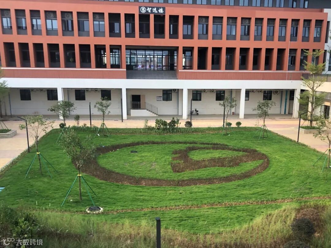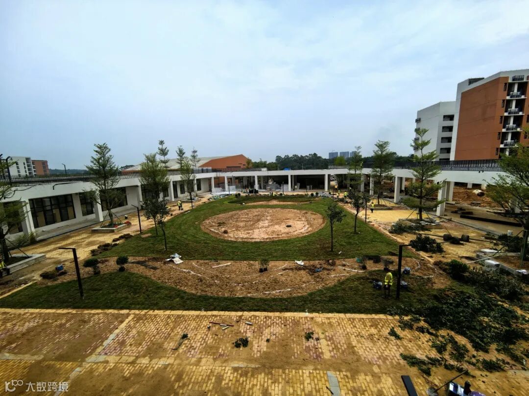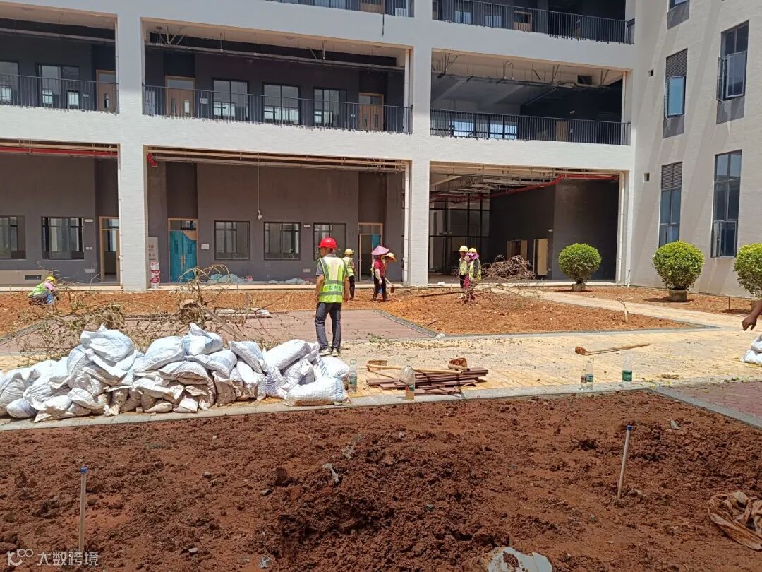 ▲校徽式绿化景观施工中