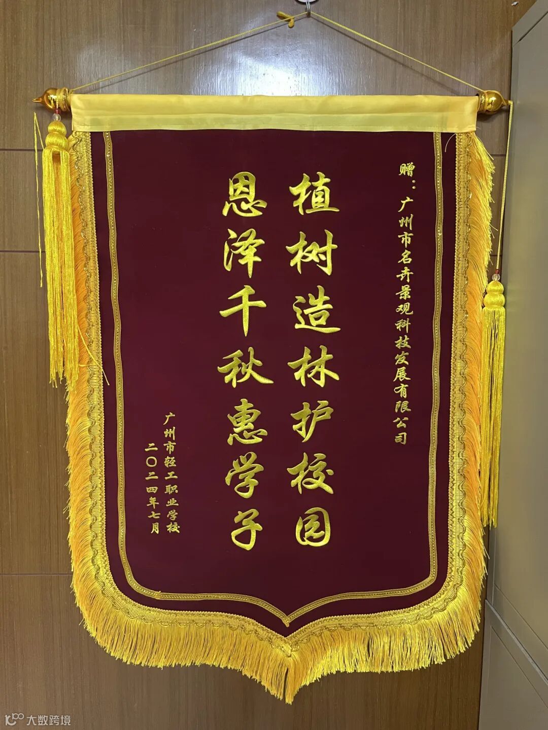 ▲名卉公司获赠广州市轻工职业学校锦旗