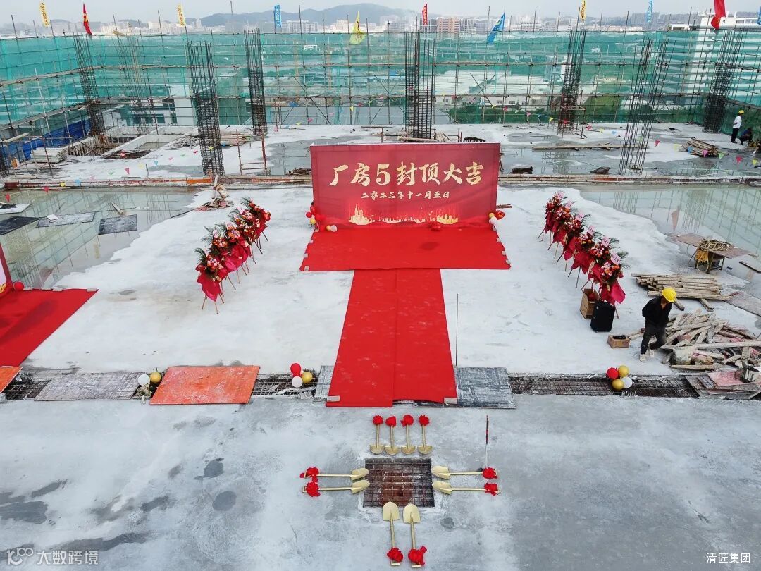 2023年11月5日上午,在金秋送爽的好时节,广东清匠电器科技有限公司厂房5封顶仪式在10楼隆重举行。现场邀请了清匠集团、各子公司领导、员工,及相关合作商领导、嘉宾们共同出席,大家欢聚一堂,吉庆封顶!