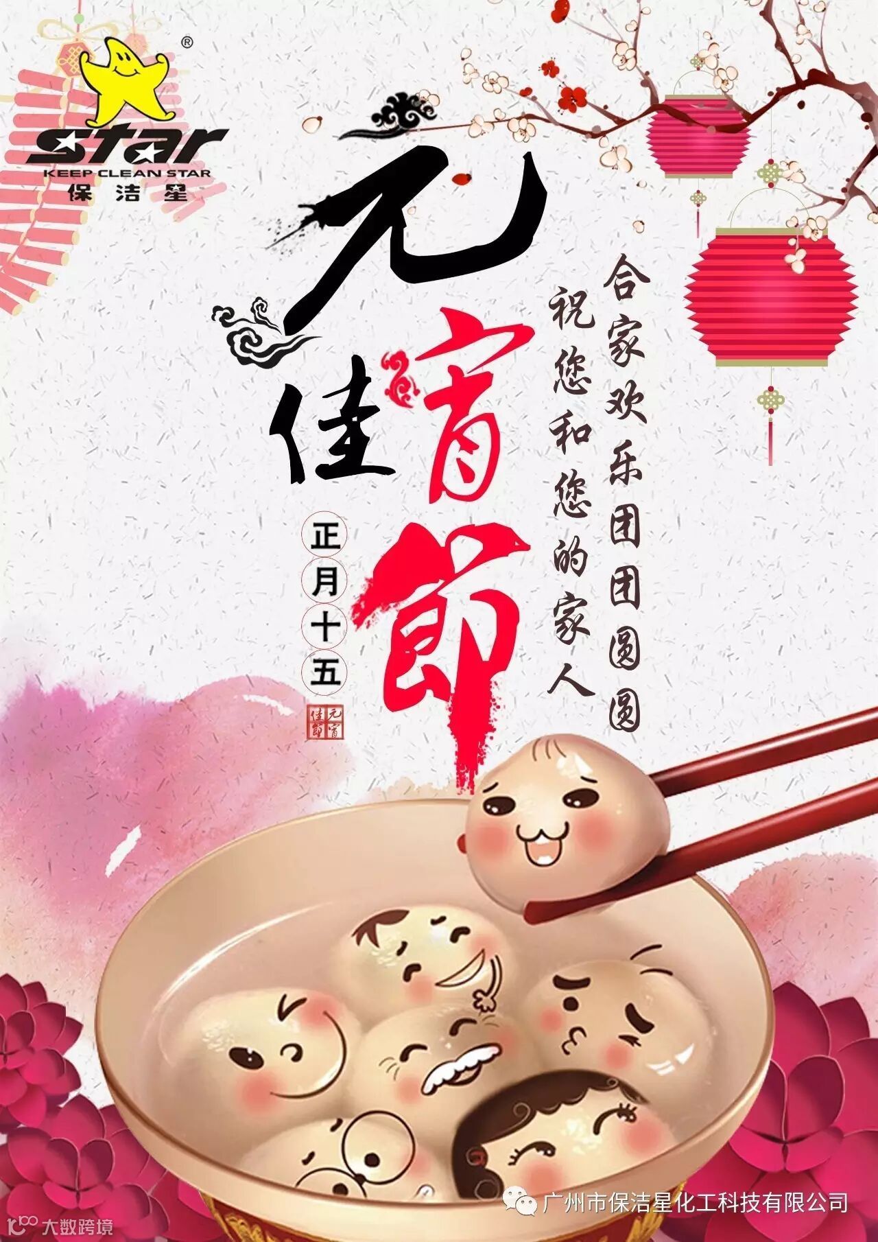 广州市保洁星科技发展有限公司喜迎元宵,早送祝愿:心圆梦圆,万事皆圆;人缘爱缘,缘缘美满;财源福源,左右逢源;友缘情缘,永不间断。保洁星全体成员祝您元宵佳节快乐无边,幸福无限!