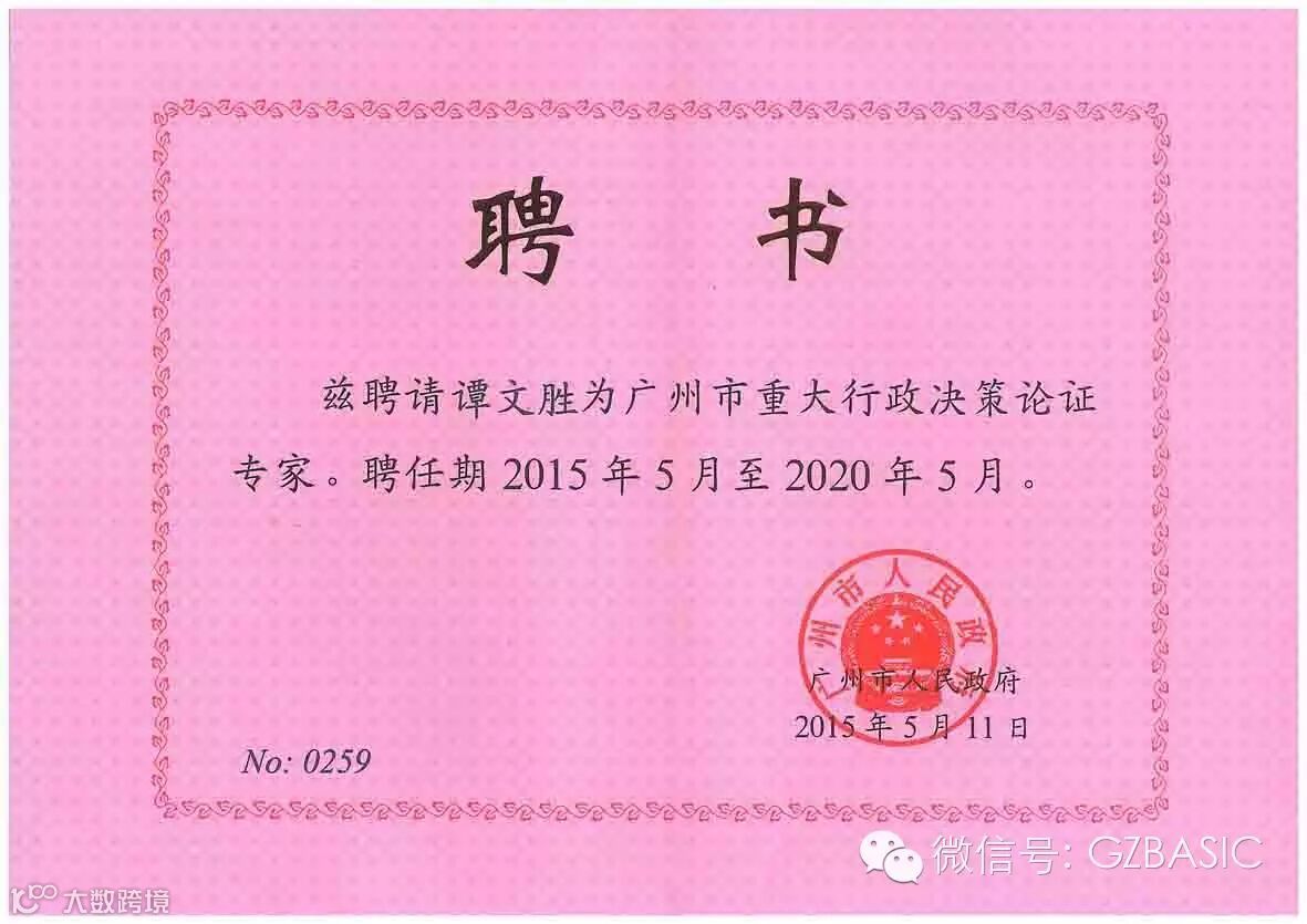5月,柏诚总经理谭文胜先生被广州市人民政府聘为广州市重大行政决策论坛专家。