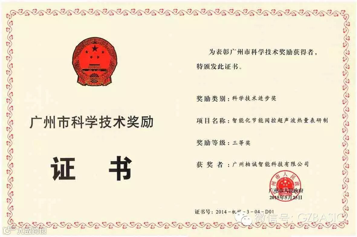 5月,柏诚 《智能化节能阀控超声波热量表研制》成果,荣获广州市科学技术进步奖。