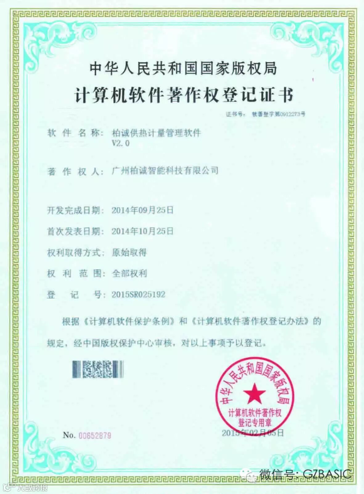2月,柏诚《供热计量管理软件V2.0》软件,取得了国家版权局计算机软件著作权登记证书。