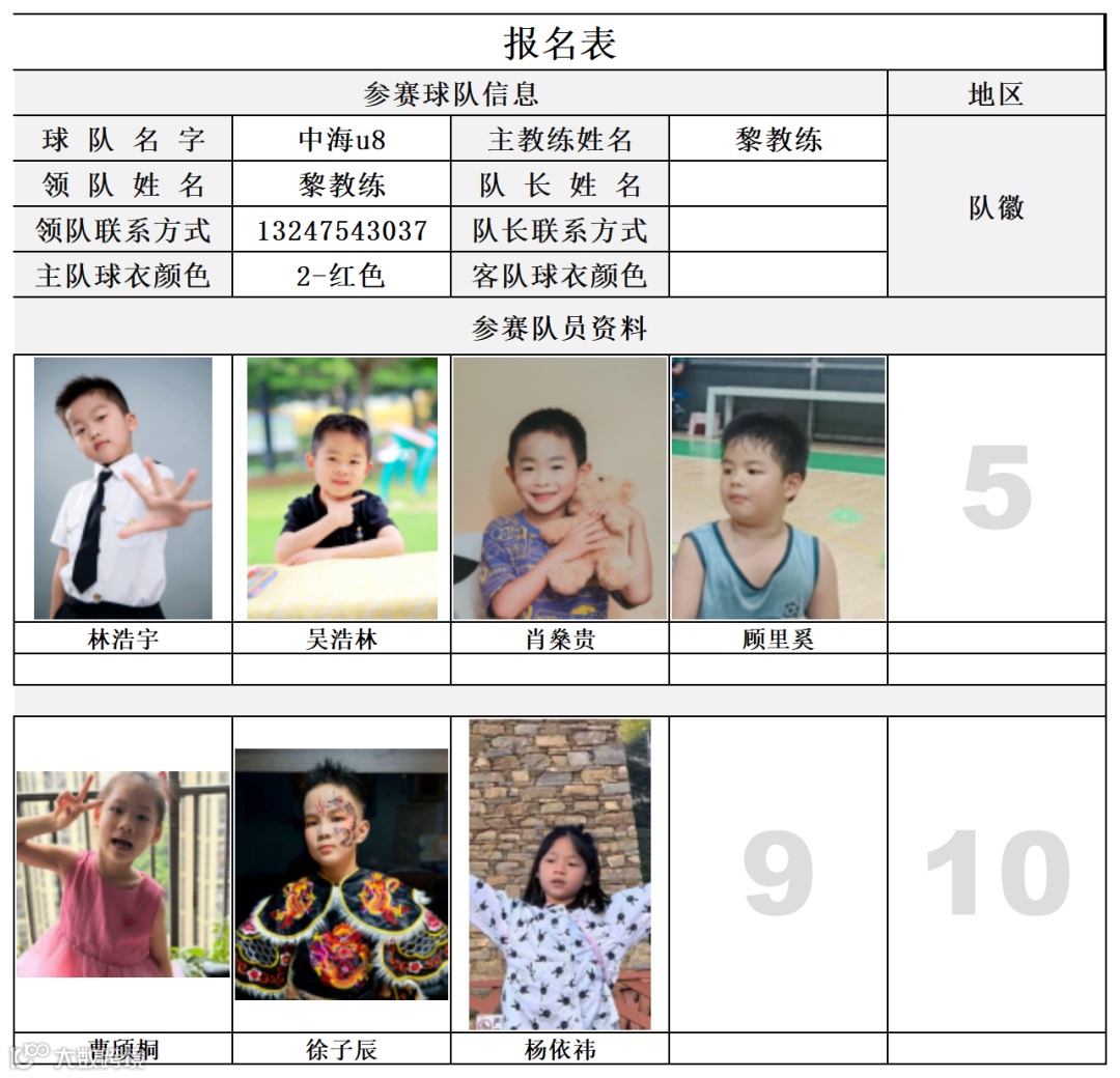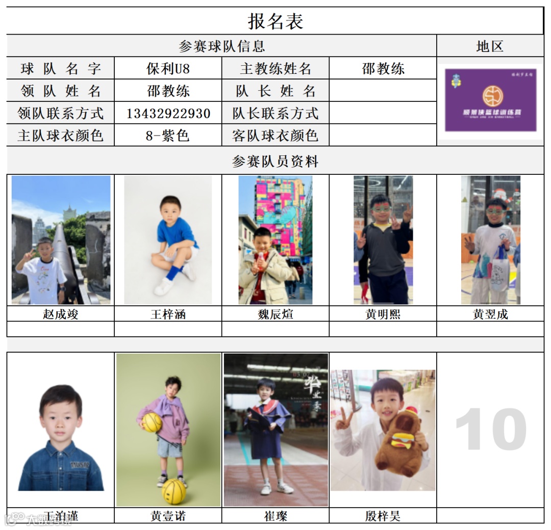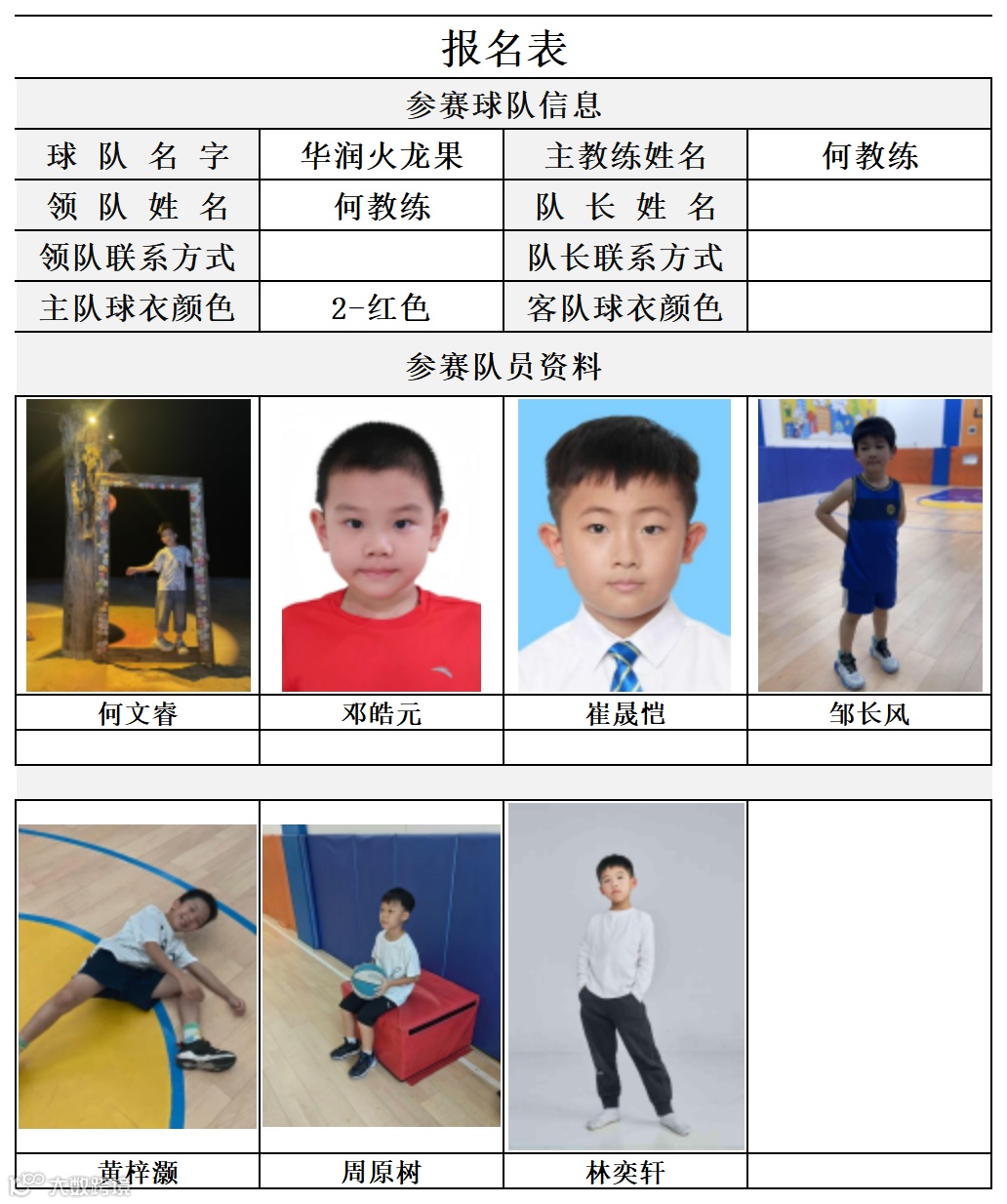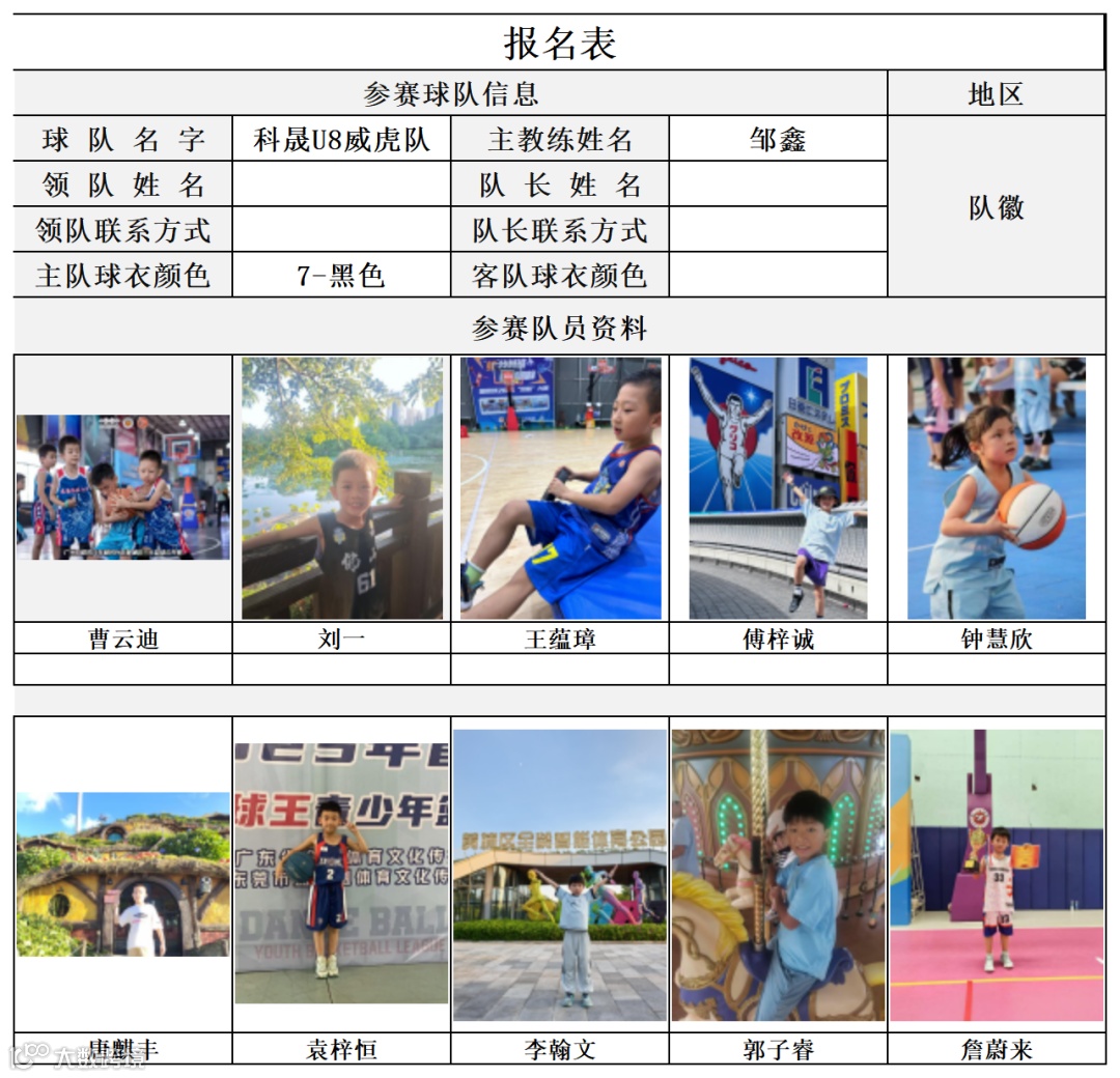 U8组球员公示