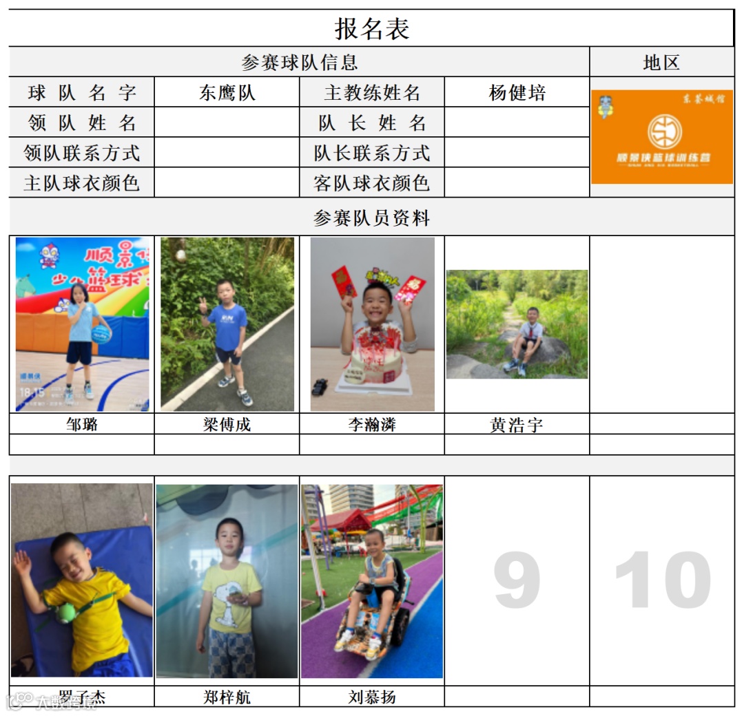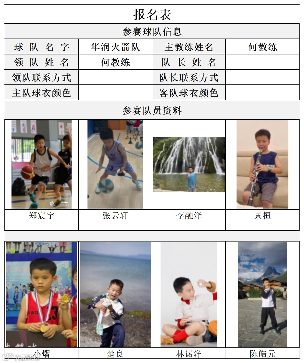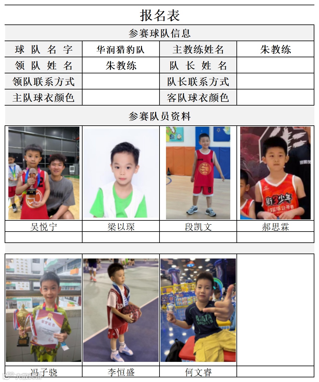 U8组球员公示