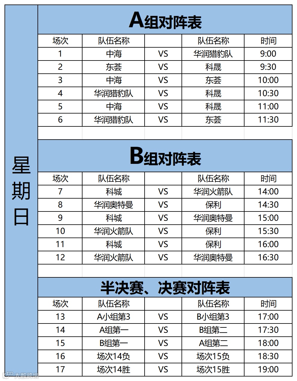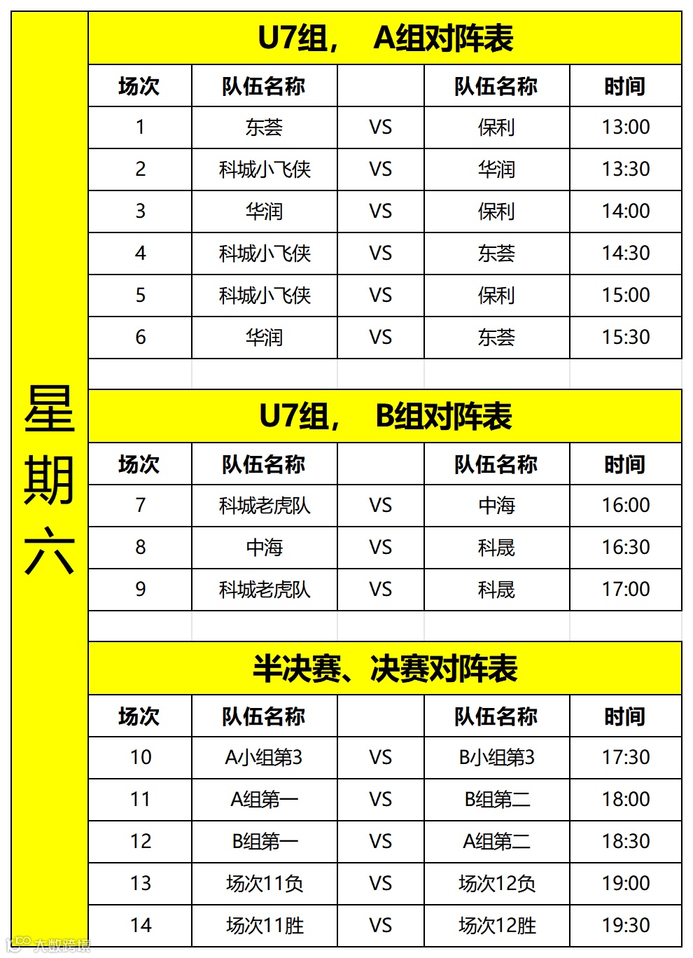 U7组比赛赛程