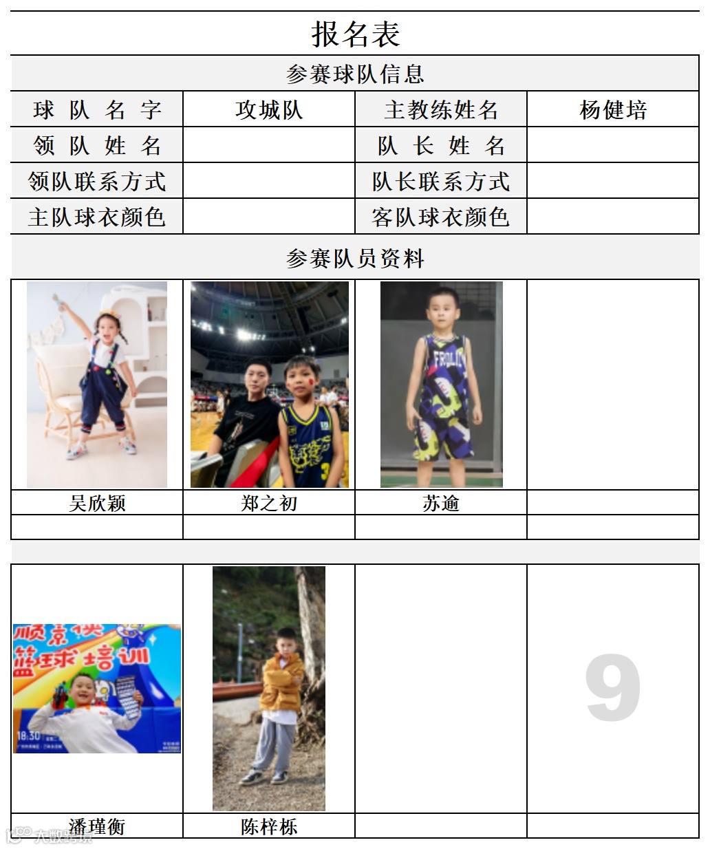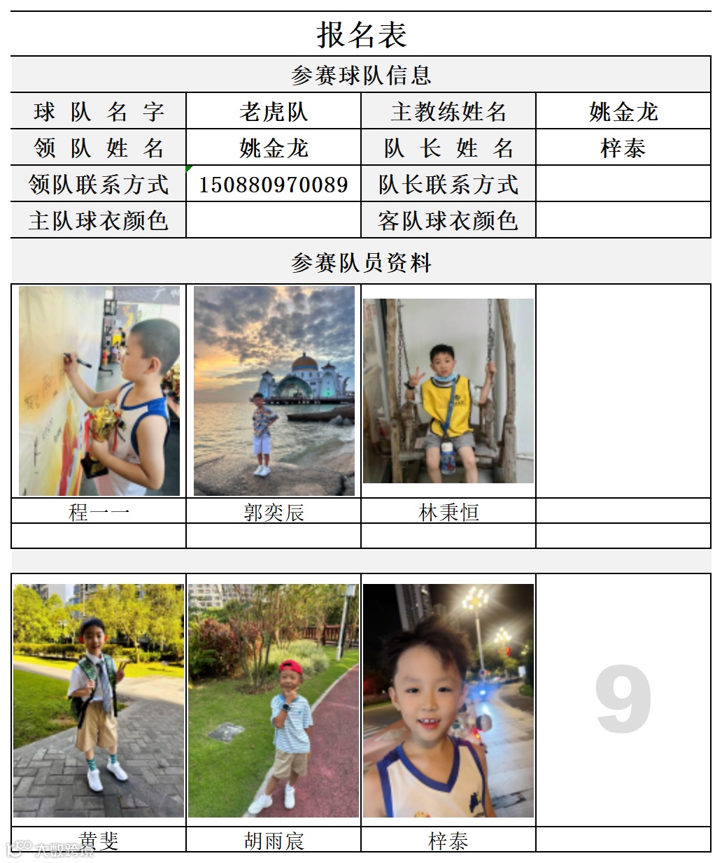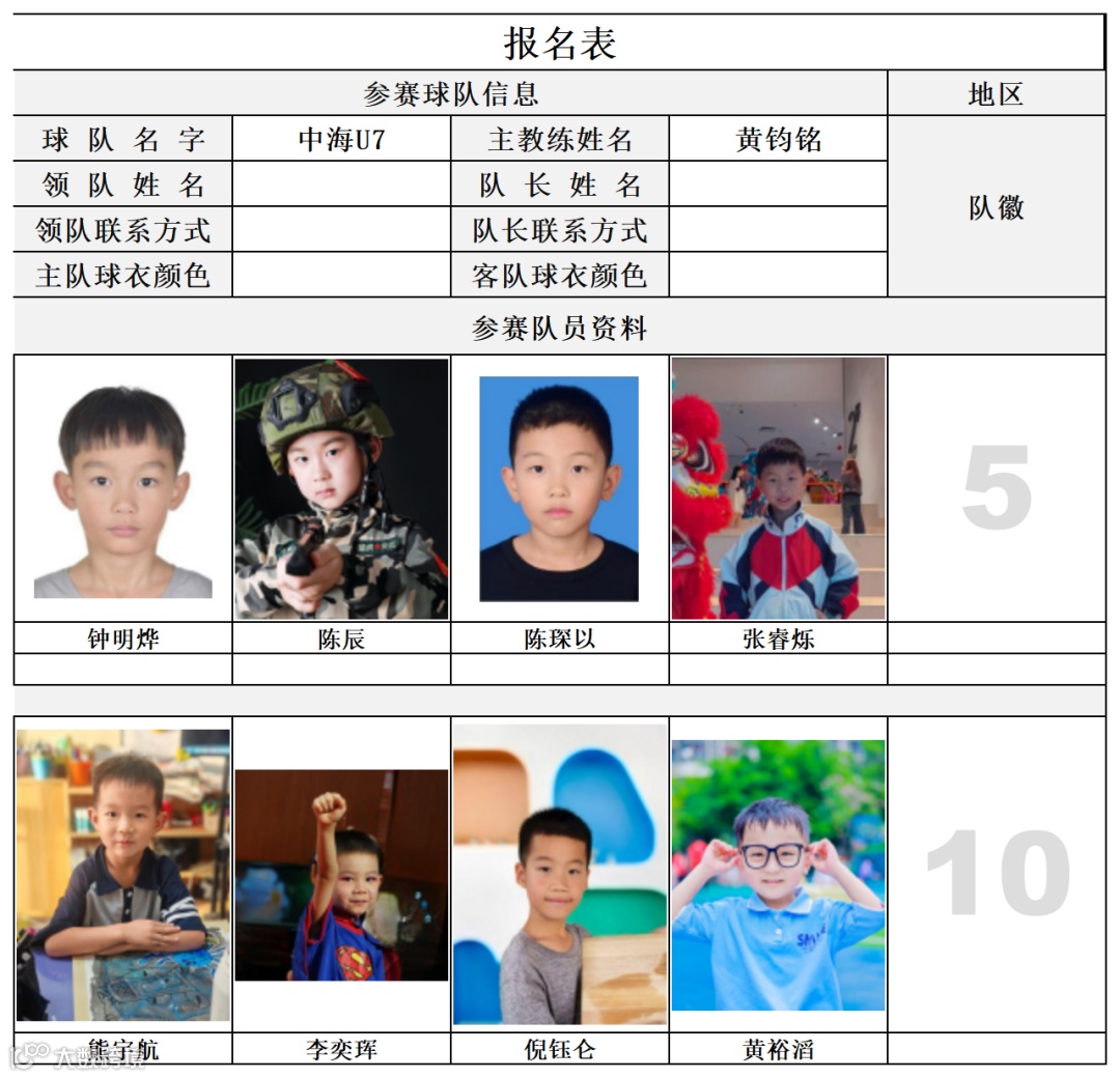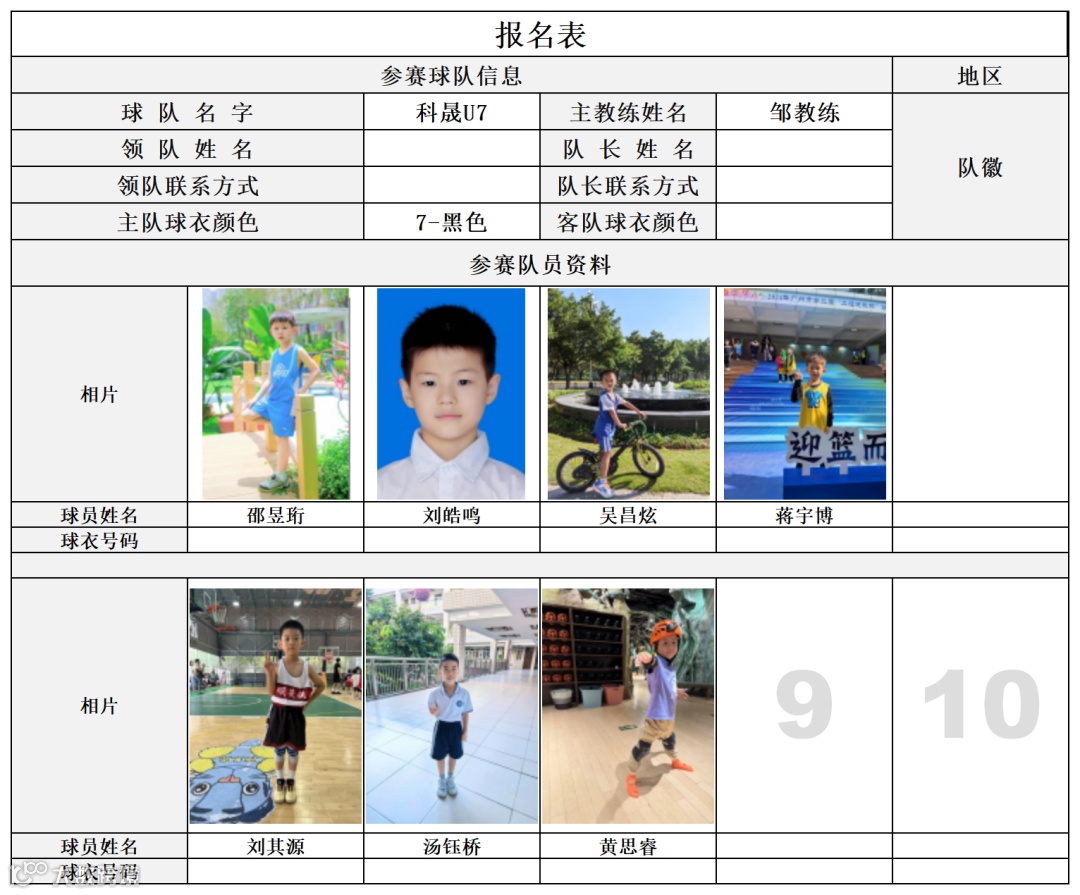 U7组球员公示