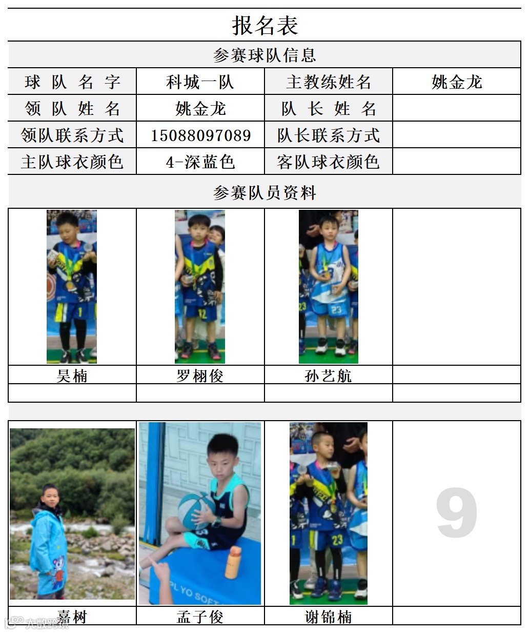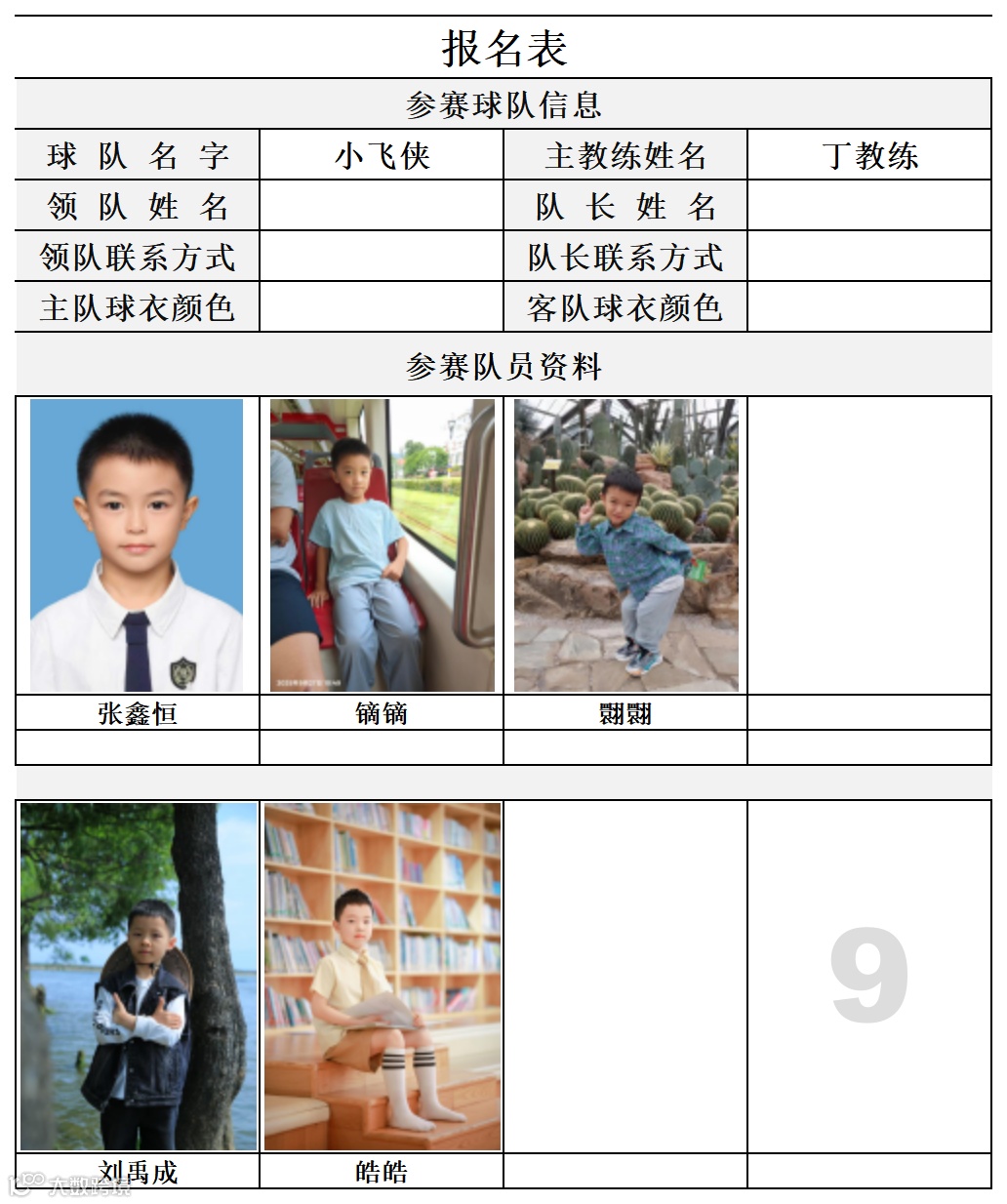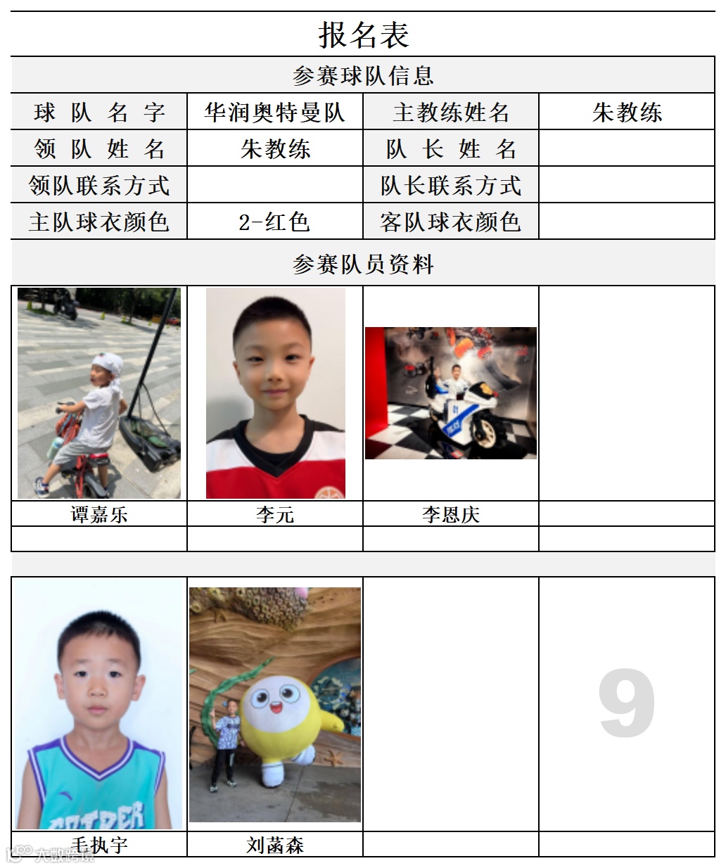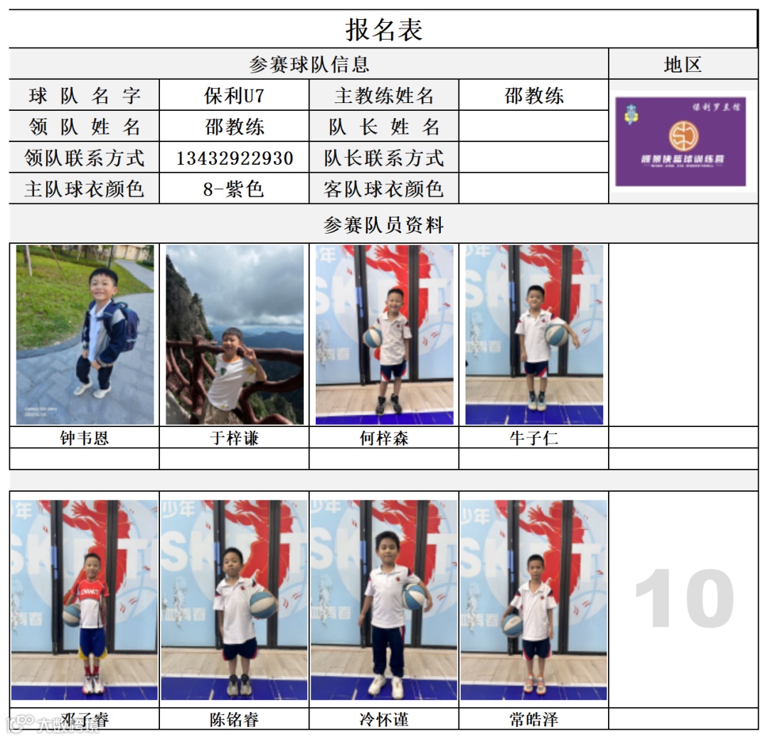 U7组球员公示