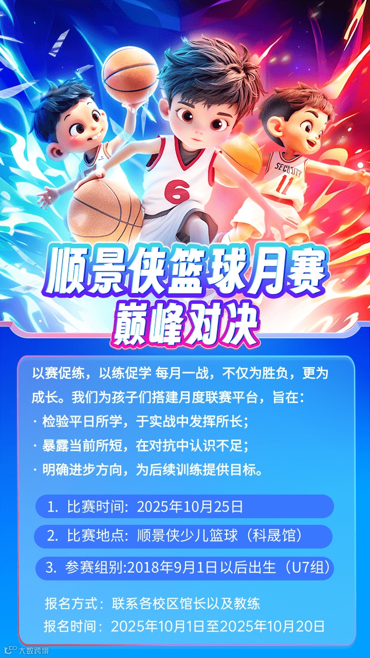 篮球是成长的舞台,每一滴汗水都是未来的见证。让我们共同期待,明后天U7、U8组的小球员们,在赛场上绽放出属于他们的、更加耀眼的光芒!
