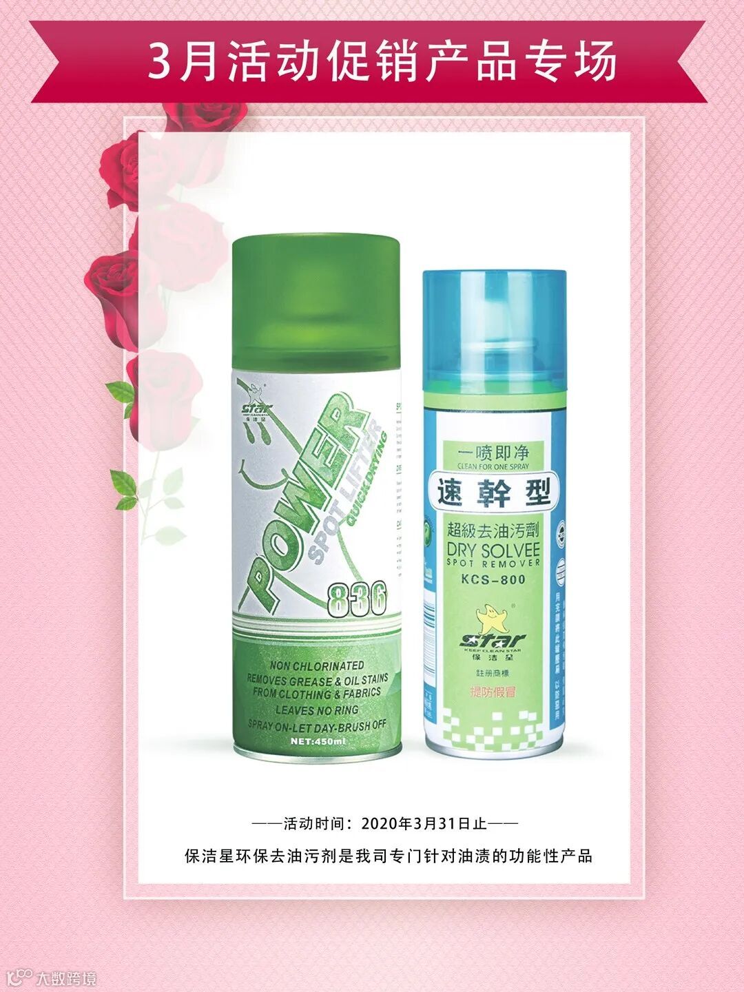 保洁星环保去油污剂是我司专门针对油渍的功能性产品。气雾压力罐装技术,弧形360度旋转喷头设计,手指按压更舒适,压力足粉末均匀细腻,保证洁净分子更好渗透。环保温和配方,不伤面料不掉色不刺激皮肤,无需水洗,轻轻一喷,油渍快速分解成粉末,快速高效,不留痕迹,轻拍即可;彻底清除纺维纺织品上的油渍斑点,随时随地轻松告别油渍烦恼。