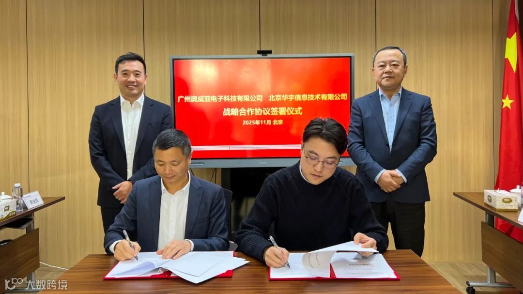 11月14日,广州市奥威亚电子科技有限公司与北京华宇信息技术有限公司正式签署战略合作协议。奥威亚总经理王勇与华宇信息总经理冯显扬共同见证了此次签约。奥威亚副总经理杨璐晟与华宇信息移动生态部总经理王博分别代表双方签约。