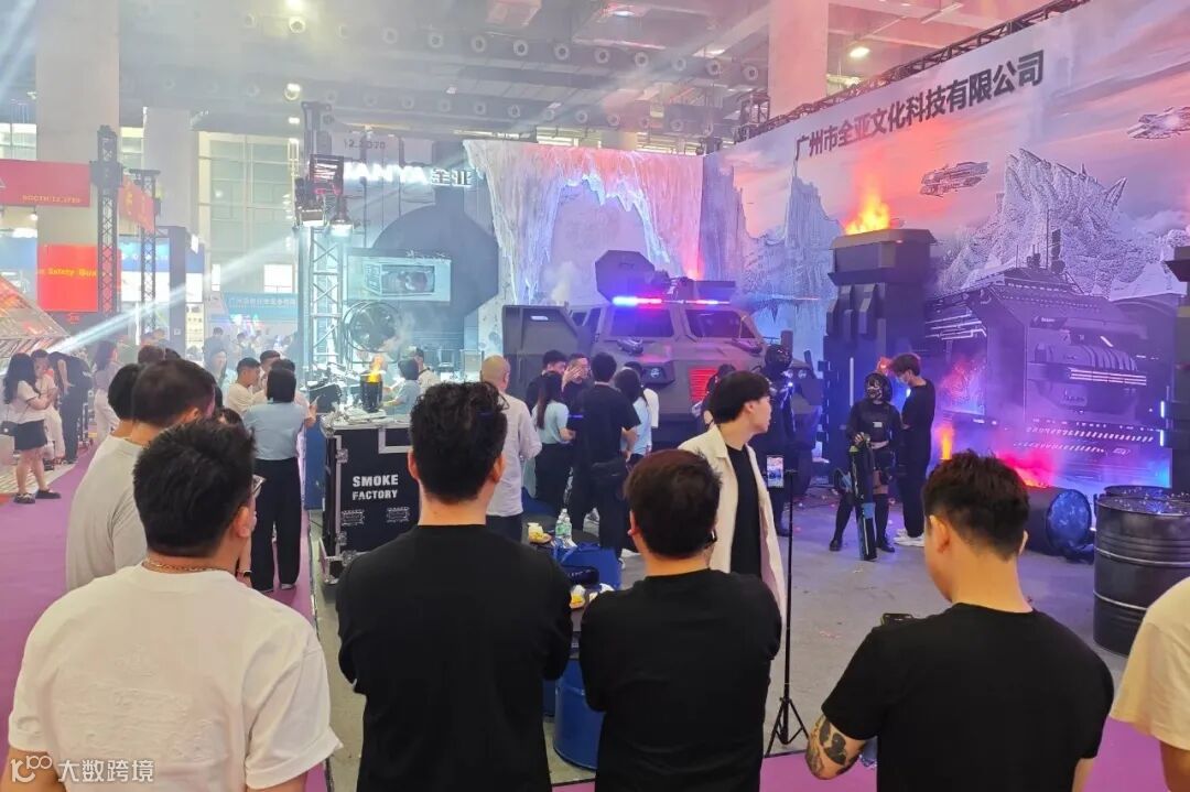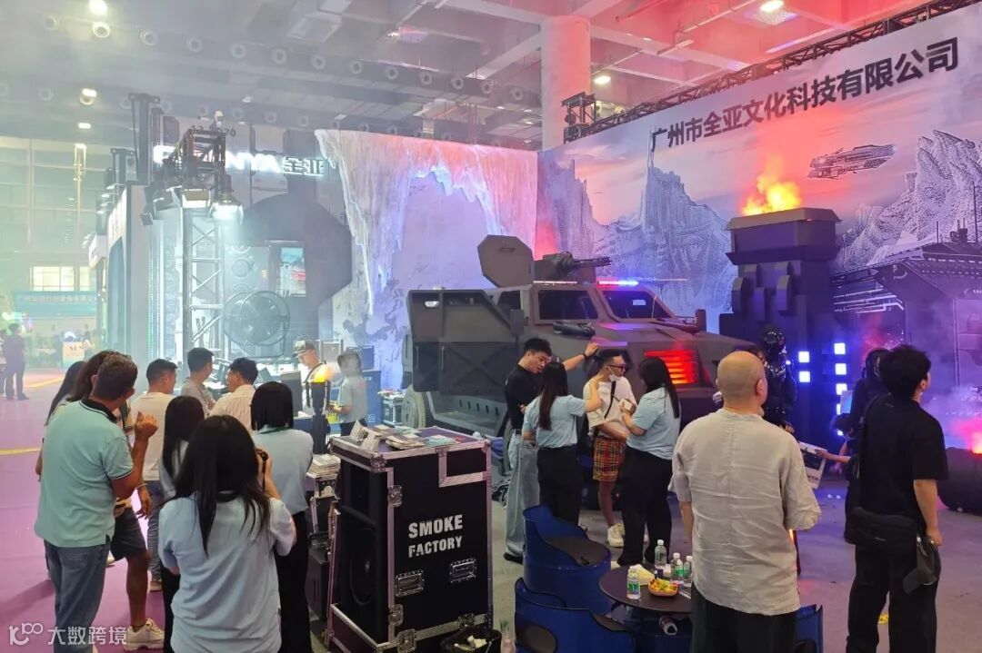 展位现场,人潮如织,热闹非凡。全亚科技打造真实场景,融入战争题材元素,战车、导弹、火炬、加特林、战枪、真人NPC等悉数亮相,用无限的创意,打造全新的特效玩法,通过沉浸式体验特效的魅力,惊艳众人,带来震撼的视觉,光影交织间,突显全亚科技的场景营造实力。