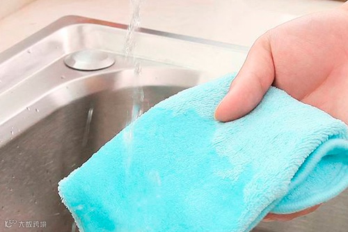 毛巾沾湿,搭配使用中性清洁剂,擦拭干净。
