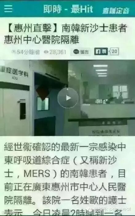 据国家卫计委,广东出现首例输入性中东呼吸综合征确诊病例。患者为韩国男性,26日乘OZ723航班到香港,经深圳沙头角口岸入境惠州,已被隔离。