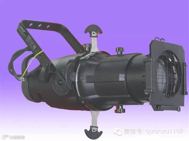 4.成像灯——或称成型灯、椭球聚光灯。其光束角有多种可以根据需要选择应用,主要特性是如幻灯似的能将光斑切割成方、菱形、三角形等各种形状,或投射出所需各种图案花纹,功率也有1KW、2KW等可选择配置。