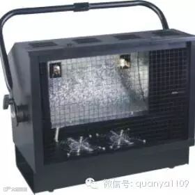 8.散光条灯——长条形,分成多格,一般能分成三或四种颜色,每格用白炽灯泡功率在200W左右,要求各种颜色自相接匀,进行大面积照射幕布或画幕使用,也可作为大面积均衡铺光之用,各种颜色光还可以同时使用,调出不同的彩色光束。