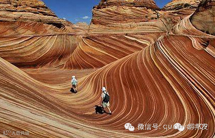 闭上眼睛,想象着自己走进了一个棕黄色的大桶里面,梦幻般的漩涡,像一块要溶化的岩石巧克力。波涛谷就像一个巨大的奥运会的游泳池,墙面是让人眩晕的波形,由煅黄土和粉色、棕色、浅绿色的材料组成。波涛谷的纹路大部分都是水平走向,有些地方会呈“Z”字形。