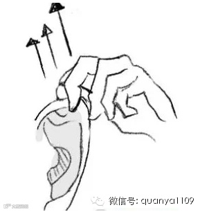 双手食指放耳屏内侧后,用食指、拇指提拉耳屏、耳垂,自内向外提拉,手法由轻到重,牵拉的力量以不感疼痛为限,每次3~5分钟。此法可治头痛、头昏、神经衰弱、耳鸣等疾病。