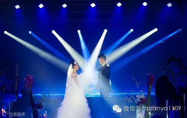 其中,一场出彩的婚礼,灯光是一个很重要的元素,灯光运用的好坏,直接关系到现场的效果和后期影像的效果。如今婚礼上运用的灯光已经不简简单单的局限于追光灯了,随着新人对婚礼的要求逐步提高,现在越来越多的婚礼朝着专业化,舞台化方向发展,婚礼已经越来越像一场文艺晚会了,因此新人对灯光的要求也逐步提高。