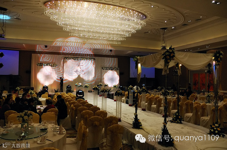 一般来讲,如果新人选择的是户外场地,一般不需要灯光,除非晚上的婚礼,如是室内场地,也需要分两种情况。一种是阳光厅,一种是封闭厅。阳光厅一般是有窗户的厅,这种厅阳光可以直接照射进来,不需要太多的灯光提亮,像这种厅一般建议新人做亮场,即整个仪式都是在明亮的灯光和日光下进行的,给来宾以温馨开阔的感觉,这样的话一般不需要追光灯等其它灯具。但如果厅内舞台较暗,为了突出舞台和让拍摄效果更好,那建议用面光去补光,在亮场的情况下,要想呈现很炫的灯光感觉,一般不是很适合。另外一种厅就是封闭厅,所谓封闭厅就是日光不能照射进来。只能靠厅内本身的灯光提亮的厅,这样的灯很适合做暗场,可以呈现出很炫的灯光或者珠光效果,给来宾以浪漫神秘的感觉,这样的厅可以用电脑灯,追光灯,LED染色灯等去呈现不同的效果。下面就从封闭厅的角度谈一谈婚礼仪式中舞台灯光的设计。