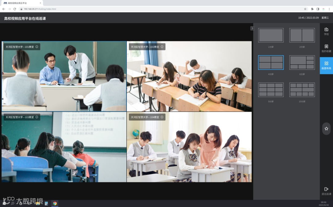 基于高校教育管理和教学质量监督需要,平台支持实时巡课与实录巡课两种方式。督导员根据课室、课表或预览布局开展巡查,无需亲临现场,即可任意调取AI录播教室进行巡回查课、随机听课和观看公开课,日常巡课便捷化。