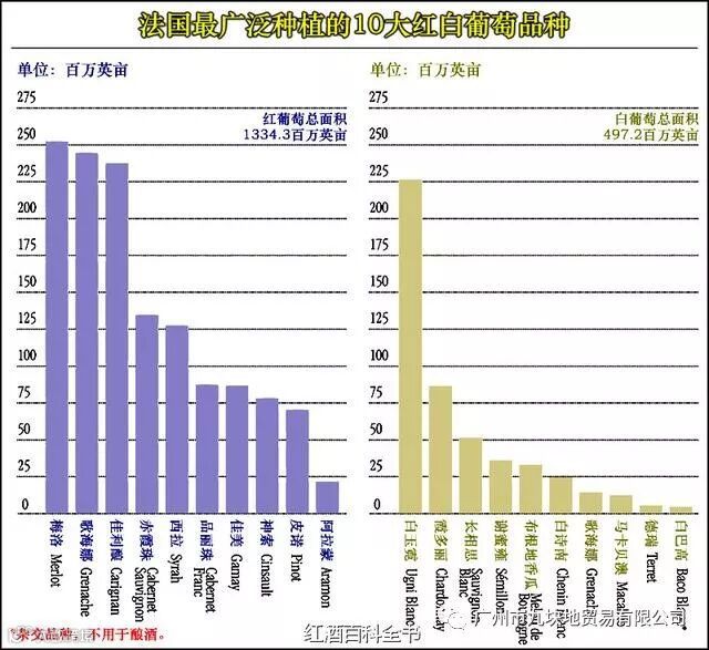 10、梅洛是法国种植最广的葡萄品种。白玉霓(Ugni Blanc)是法国种植最广的白葡萄品种。风靡全球的“波尔多混酿”是用赤霞珠、梅洛、品丽珠、马尔贝克和小味而多混酿而成。