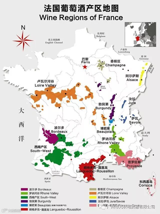 3、法国有10大最重要的葡萄酒产区,分别是波尔多(Bordeaux)、勃艮第(Burgundy)、香槟(Champagne)、阿尔萨斯(Alsace)、卢瓦尔河谷(Loire Valley)、罗讷河谷(Rhone Valley)、汝拉/萨瓦(Jura/Savoie)、朗格多克-露喜龙(Languedoc-Roussillon)、普罗旺斯(Provence)、科西嘉岛(Corse)和西南产区(South West)。