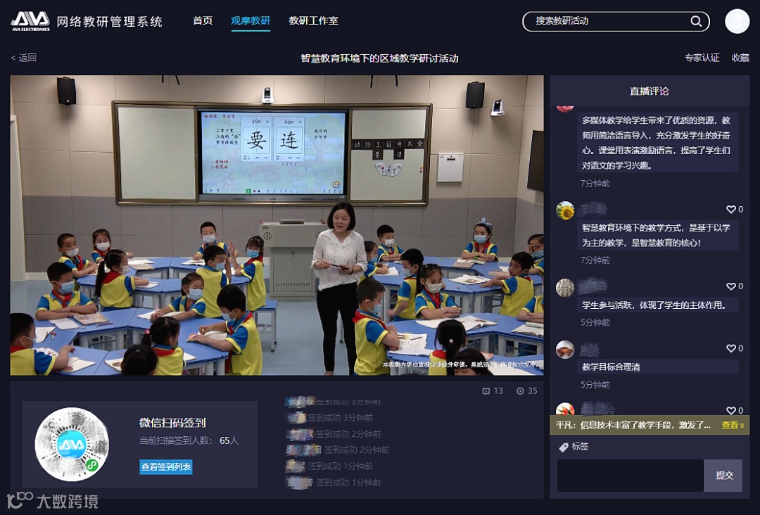 6月24日,在奥威亚的网络教研云平台(以下简称:“易教研”平台)支持下,陕西省铜川市王益区举办了一场全区范围内的网络教研活动,共有420人次签到参与,教研视频全天点击量达4.88万次 。活动中,超清画面跟踪还原了教学全过程场景,即时的教研反馈让学习效果更突出。