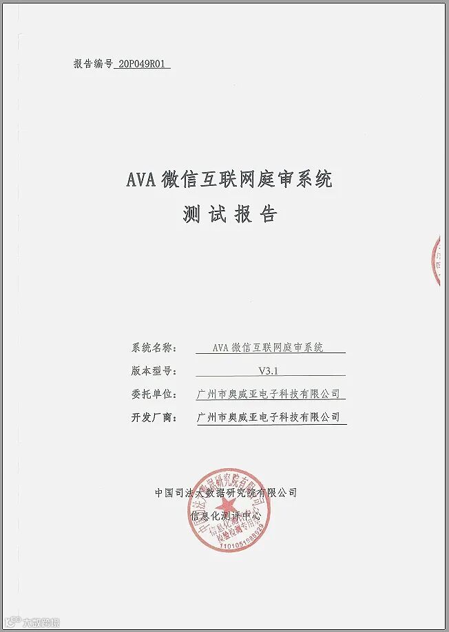 据悉,中国司法大数据研究院有限公司是最高人民法院信息化顶层设计与集成总体单位。AVA微信互联网庭审系统顺利通过本次测评,标志着奥威亚庭审系统得到了司法行业的最高认可,也凸显了奥威亚在司法领域的技术实力。
