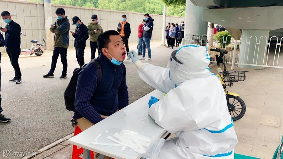 图为湖北办事处员工进行核酸检测