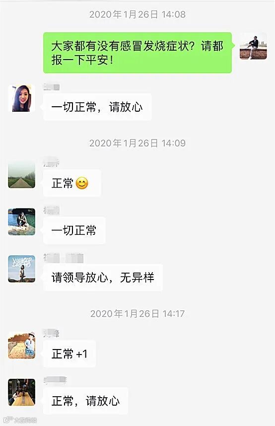 2月7日,再次一一确认所有同事都安全,无任何症状,没有去过任何易感染区