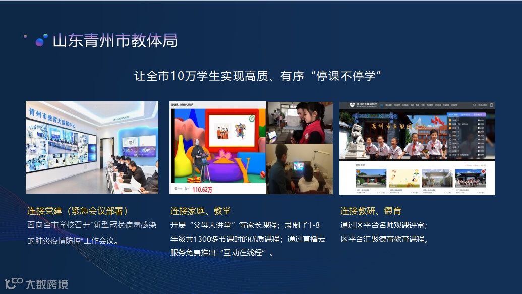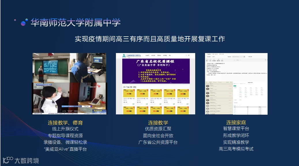 经过疫情大考,奥威亚早些年助力多地落地部署的“三个课堂”相关应用充分展示了前期建设成效,其中包括山东青州市教体局、广东华南师大附中等,在奥威亚的支持下,疫情期间形成了高质、高效、有序的“停课不停学”好做法。这些可落地、可复制的案例,受到了各界关注与好评,引领了当地教育信息化创新发展。