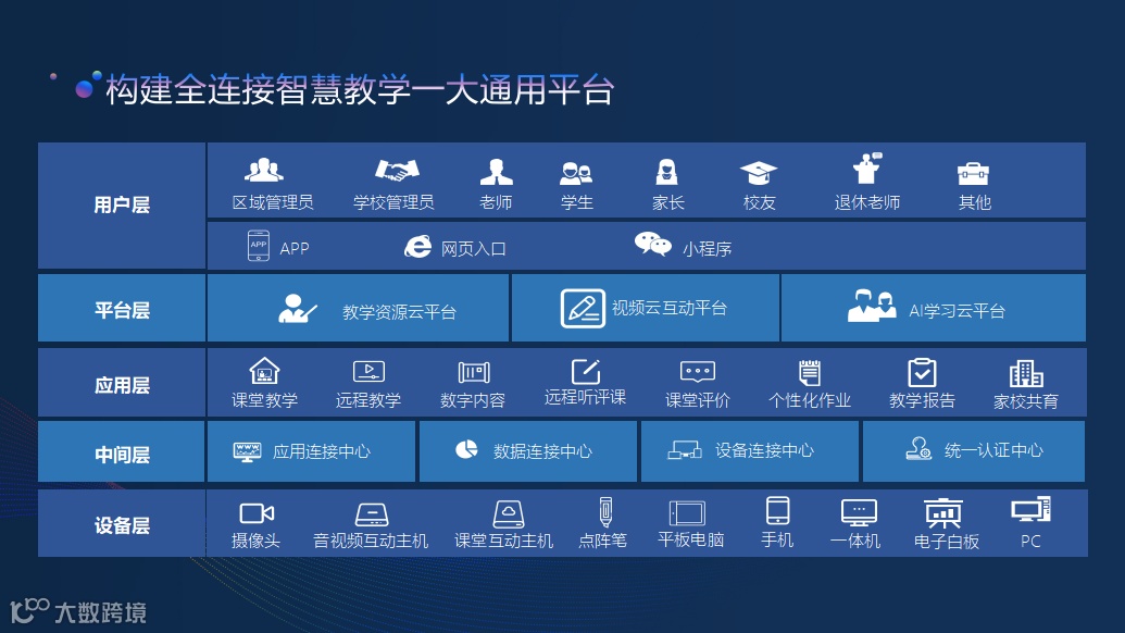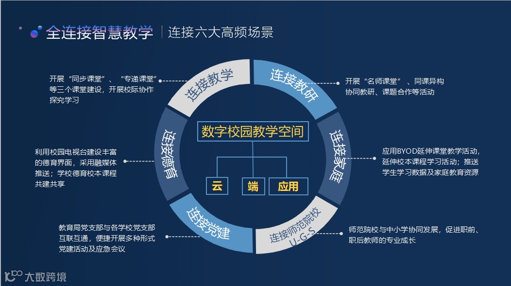 奥威亚全连接智慧教学以满足区域教育优质均衡发展实际需求为前提,围绕“五育并举”的教育教学活动中的六大高频核心应用场景(即教学、教研、德育、党建、家庭、师范院校),全面推动信息技术与教育教学深度融合,可根据各区县特有情况进行针对性调整,形成更有差异化的特色,稳步推进各区域教育信息化发展。